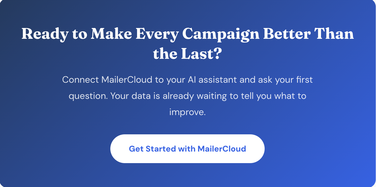 MailerCloud is the first email marketing platform with built-in AI campaign analysis through MCP (Model Context Protocol). Your AI assistant connects directly to your campaign data and delivers grades, benchmarks, trends, and action plans — through natural conversation.